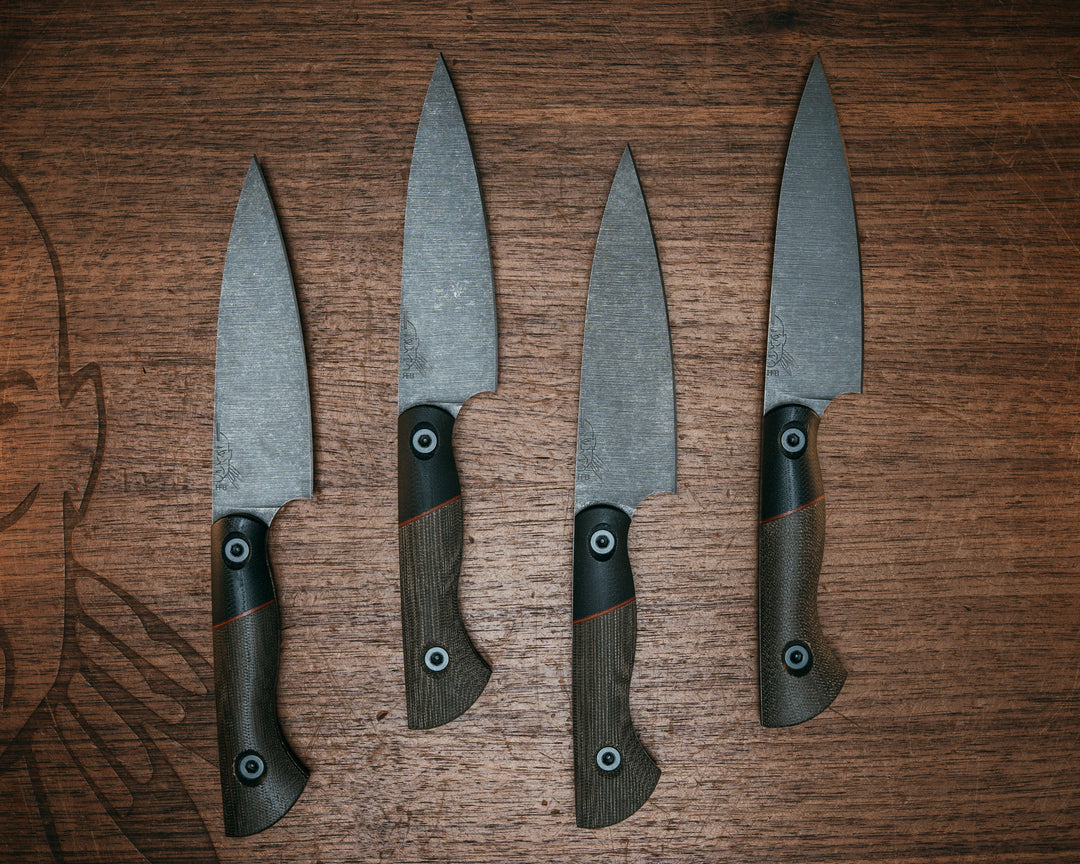 Steak Knife Set (4 Pcs) - Black G10, Natural Canvas Micarta Split, OD Green Canvas Micarta, Allen Bolts, Smooth Grip