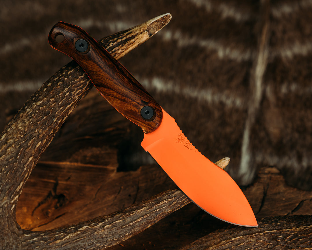 Skinner Jr- Black Canvas Micarta, Hunter Orange Cerakote, Allen Bolts, Chaos Grip