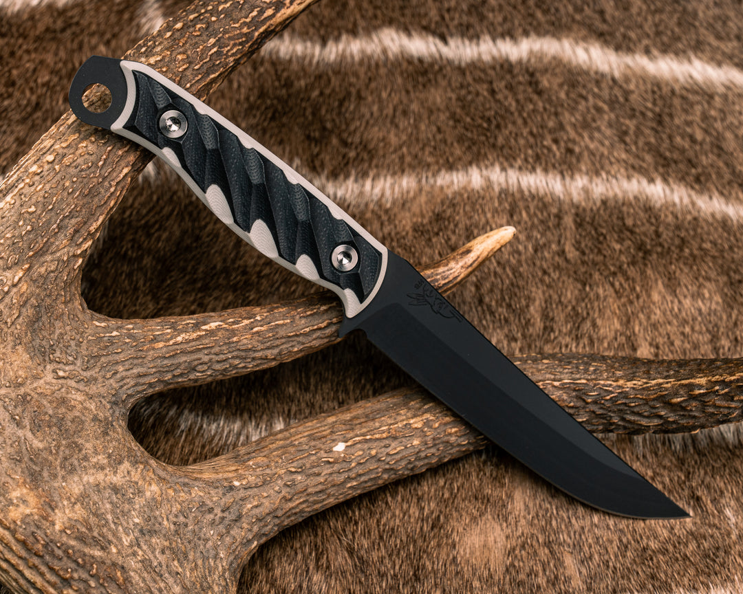 Crow Breakdown- Black/White G10, Armor Black Cerakote, Ti Allen Bolts, Textured Grip
