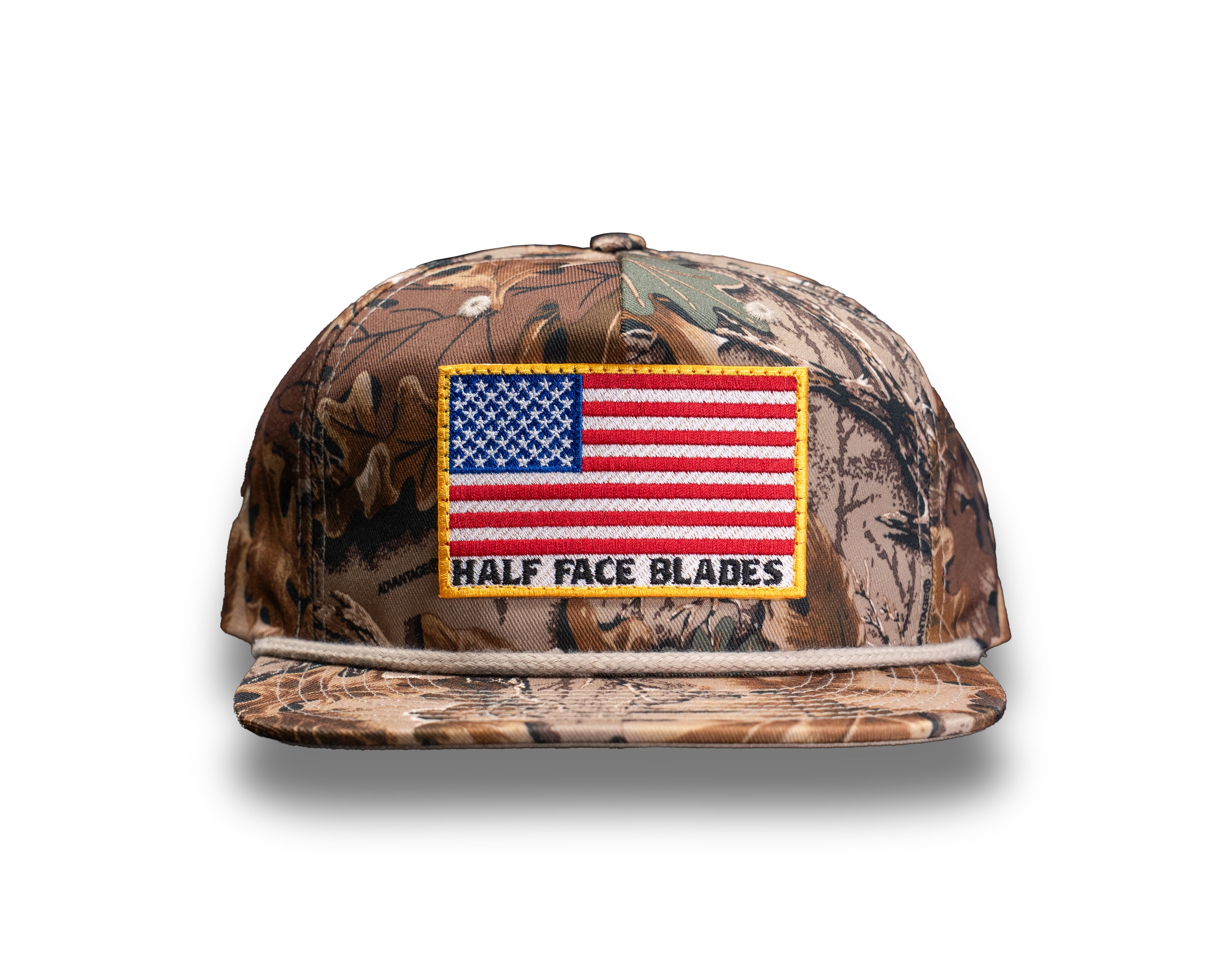Mossy Oak Bottomland w/Black Rope/ HFB American Flag Patch Hat