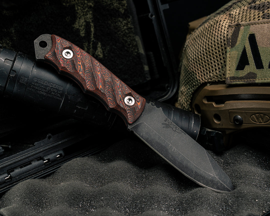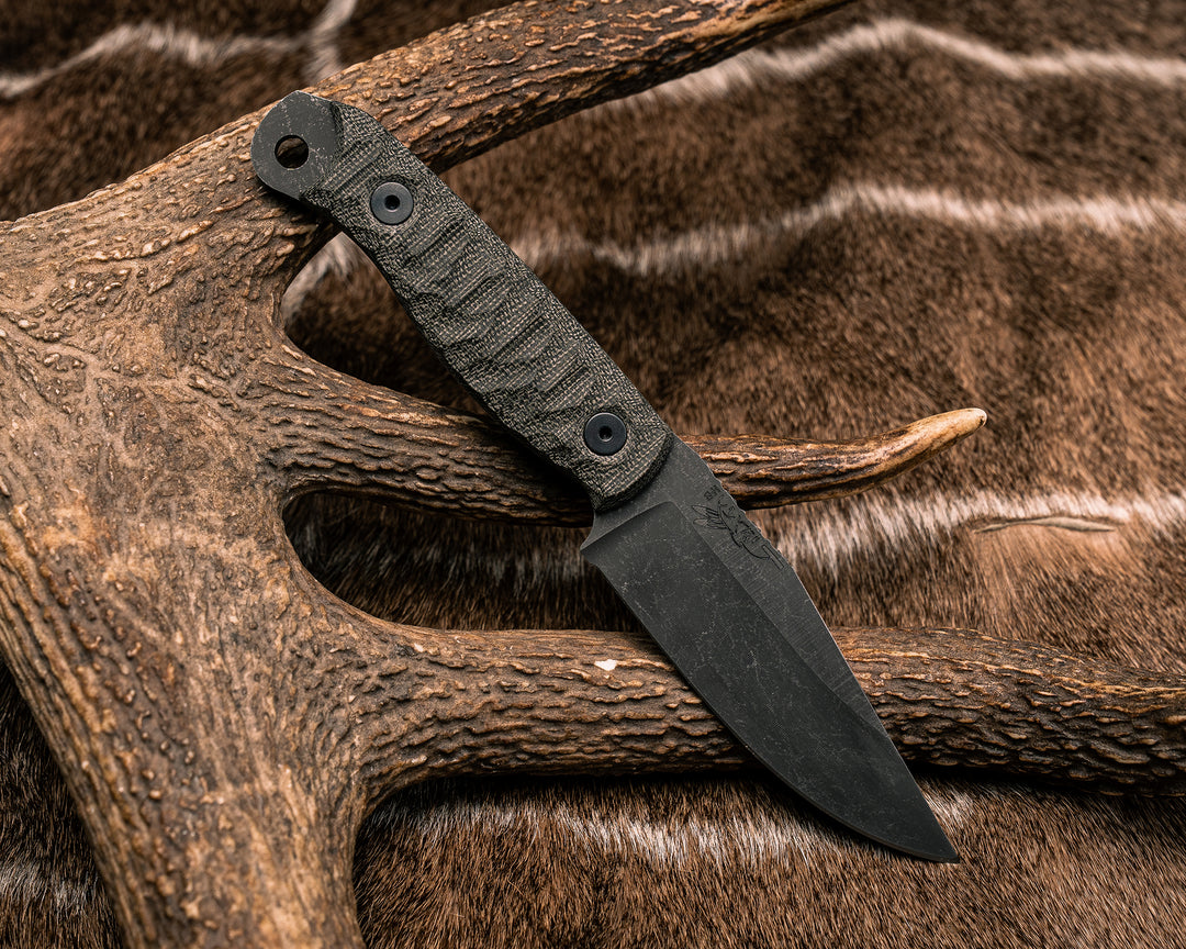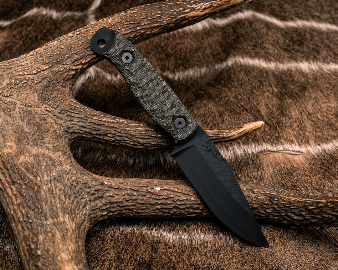 Feather Light- Black Canvas Micarta, Midnight Bronze Cerakote, Ti Allen Bolts, Textured Grip