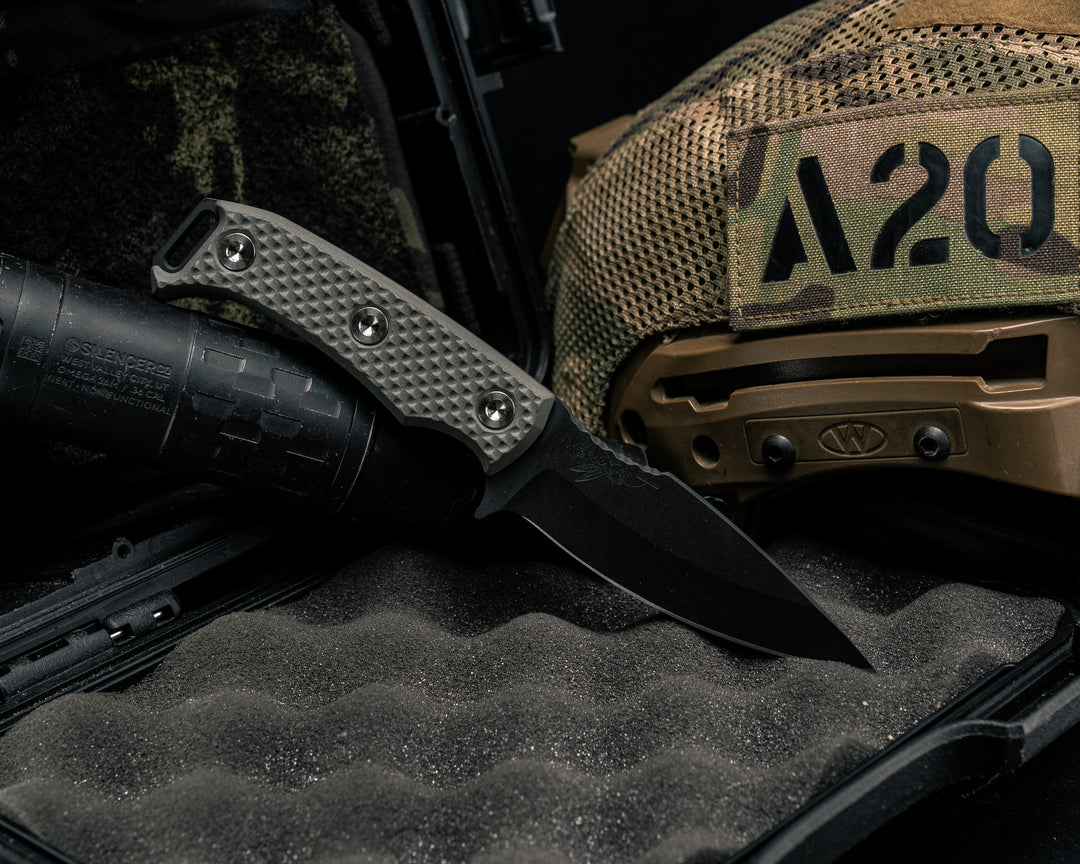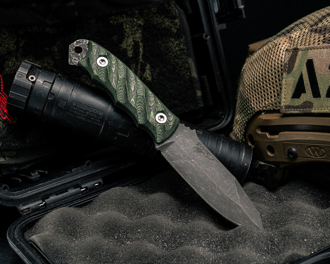 Crow Scalper - OD Green Canvas Micarta, Armor Black Cerakote, Allen Bolts, Chaos Grip