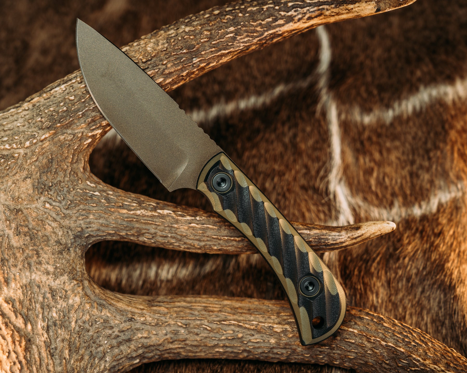 Cav Jr Back Country- OD Green and Black G10, Midnight Bronze Cerakote, Allen bolts, Reticulated Grip