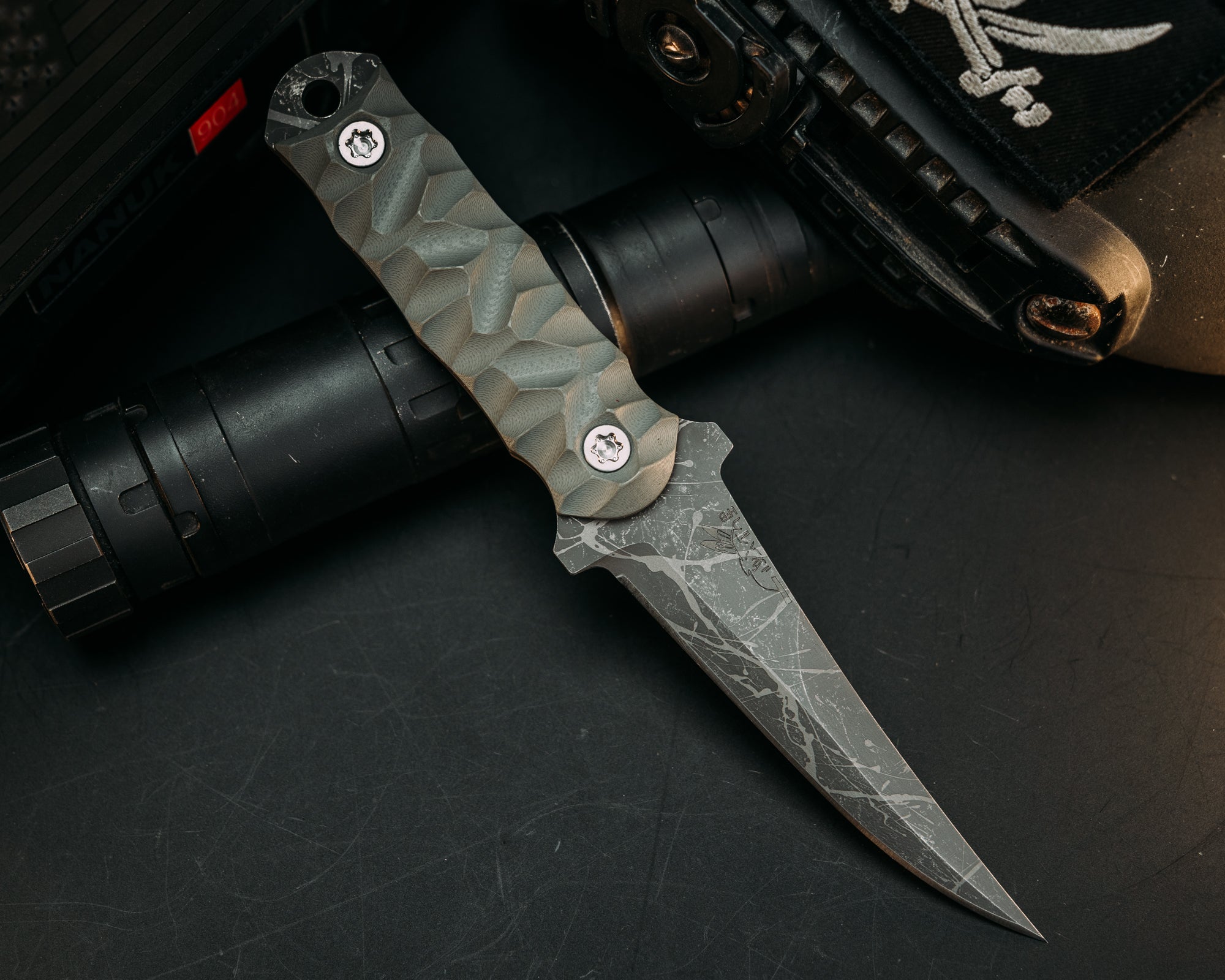 Next: Combat Filet - Gray G10, Allen Bolts, Chaos Grip, splashed acid etch,