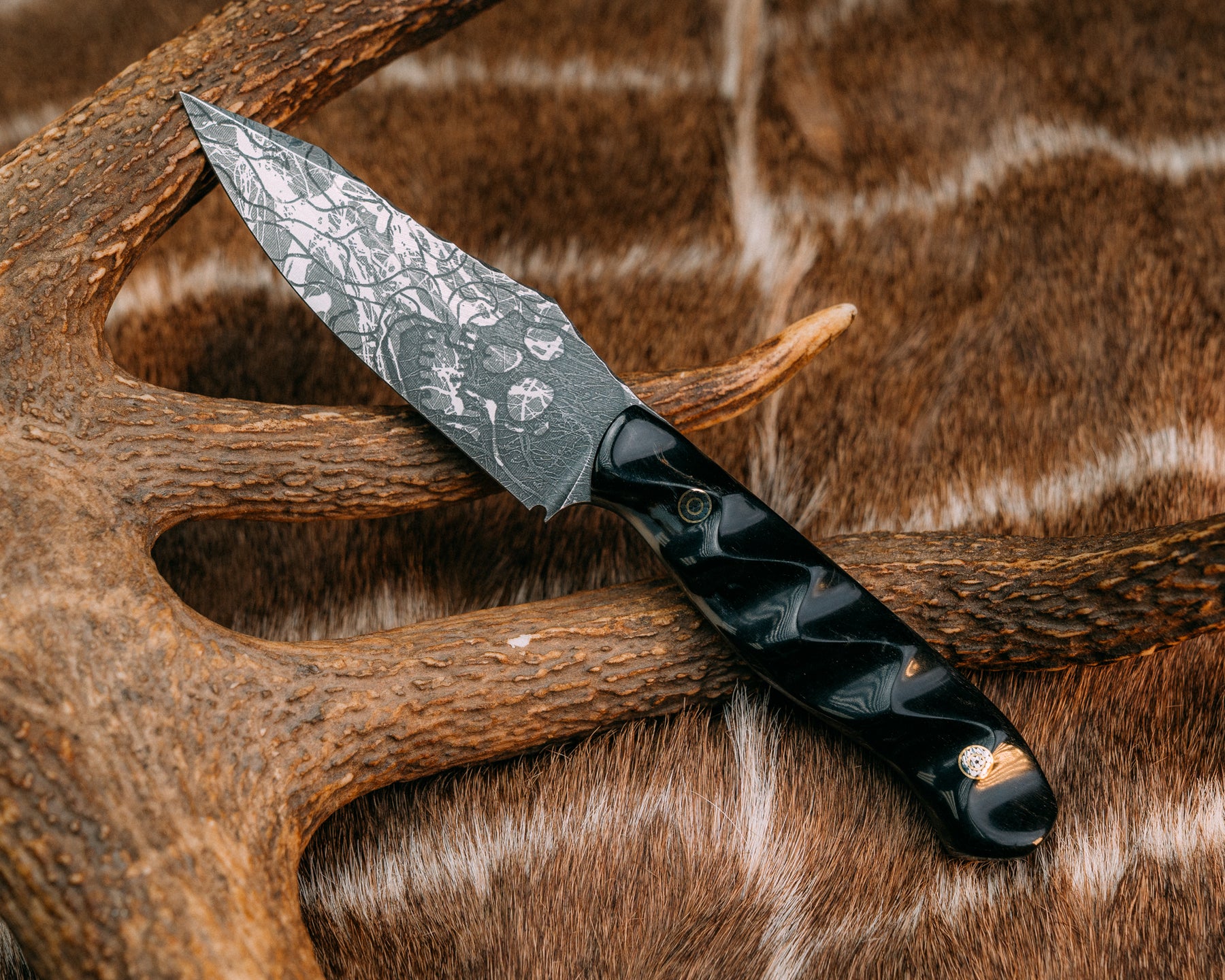 Field Knife (CruWear)- Rams Horn, Mosaic Pins, Textured Grip