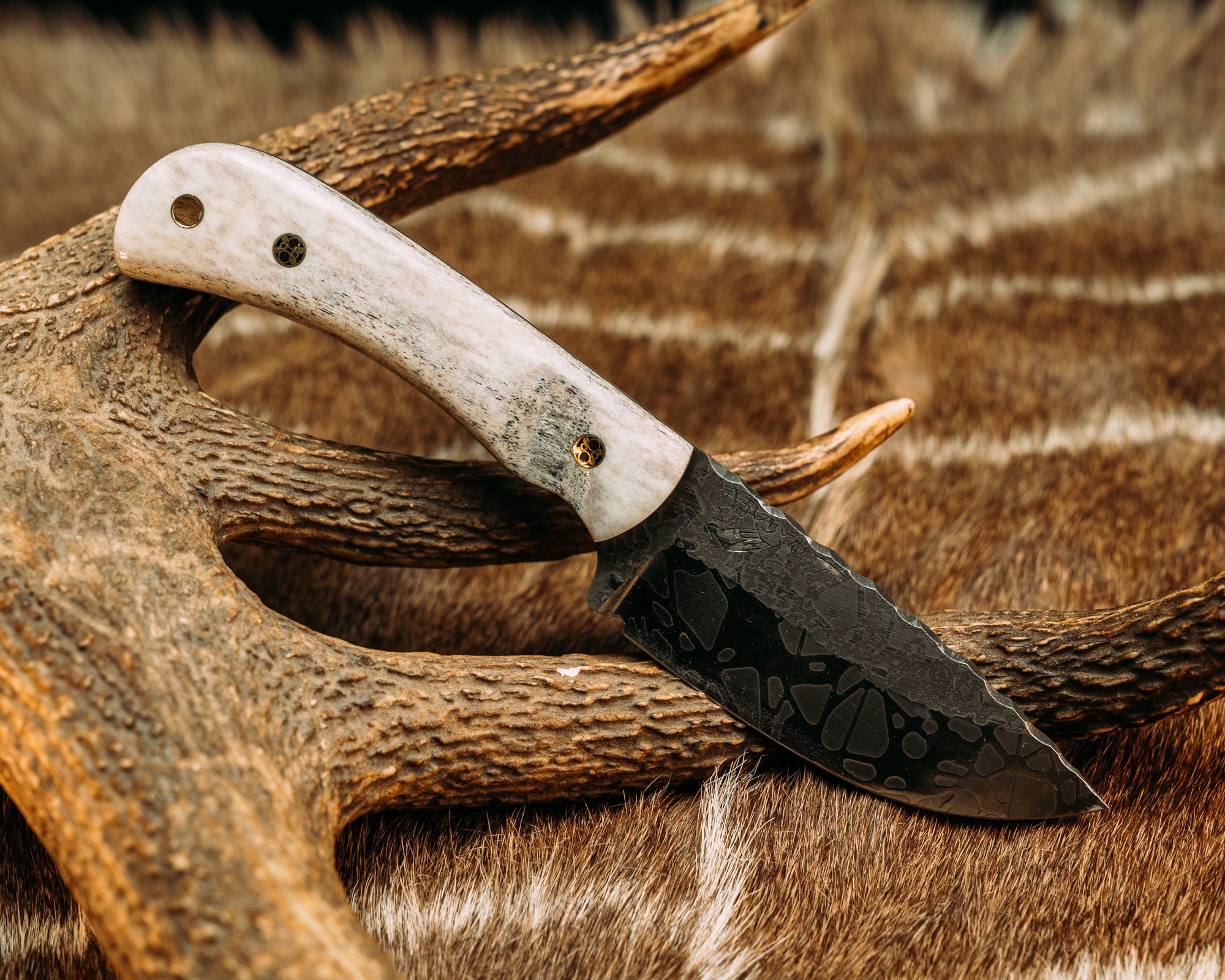 Field Knife Jr- Baker Forge Ladde Pattern Damascus- Patriot Mosaic Pin