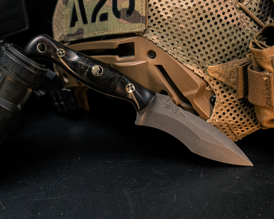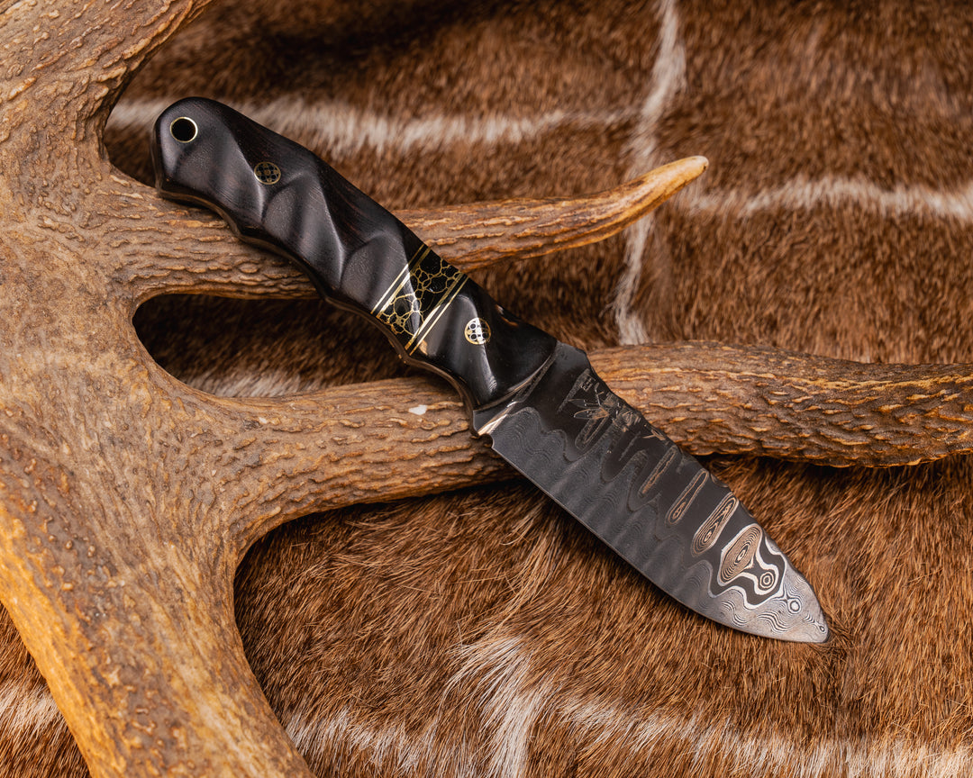 Combat Dagger- African Blackwood, Brass Hollow Pins, Textured Grip