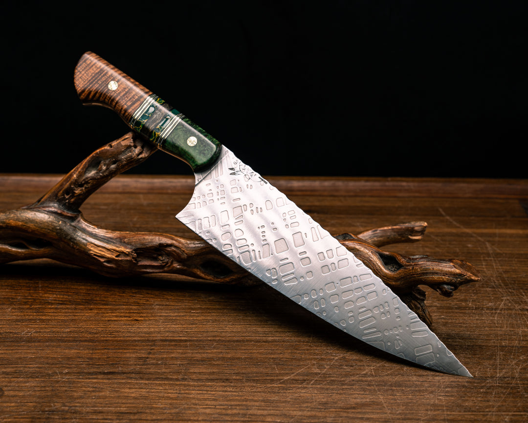 Chef Blade- Dyed Maple, Mosaic Pins, Smooth Grip