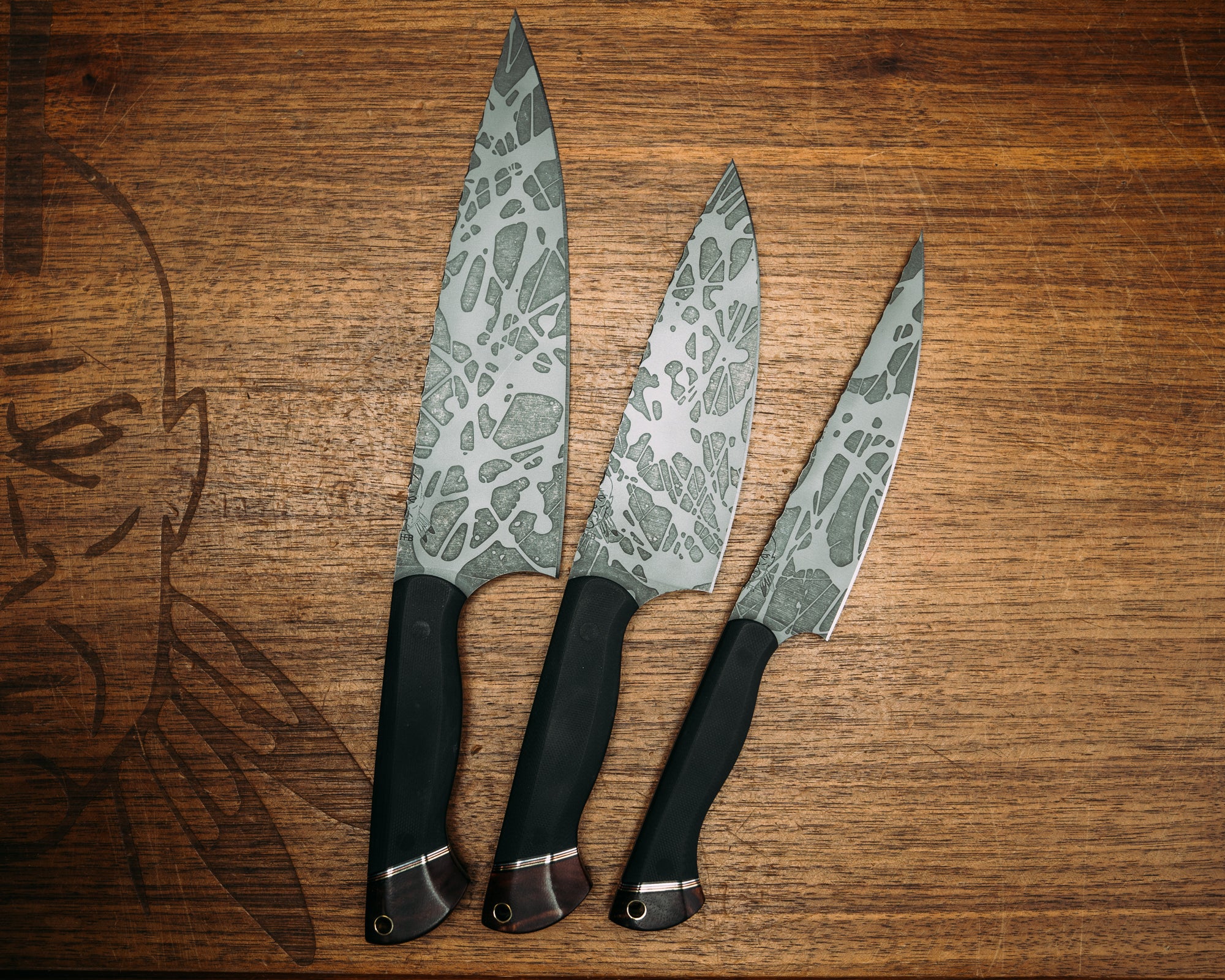 Chef Blade- Dyed Maple, Black G10, Coyote G10, Black Micarta, Ruby G10