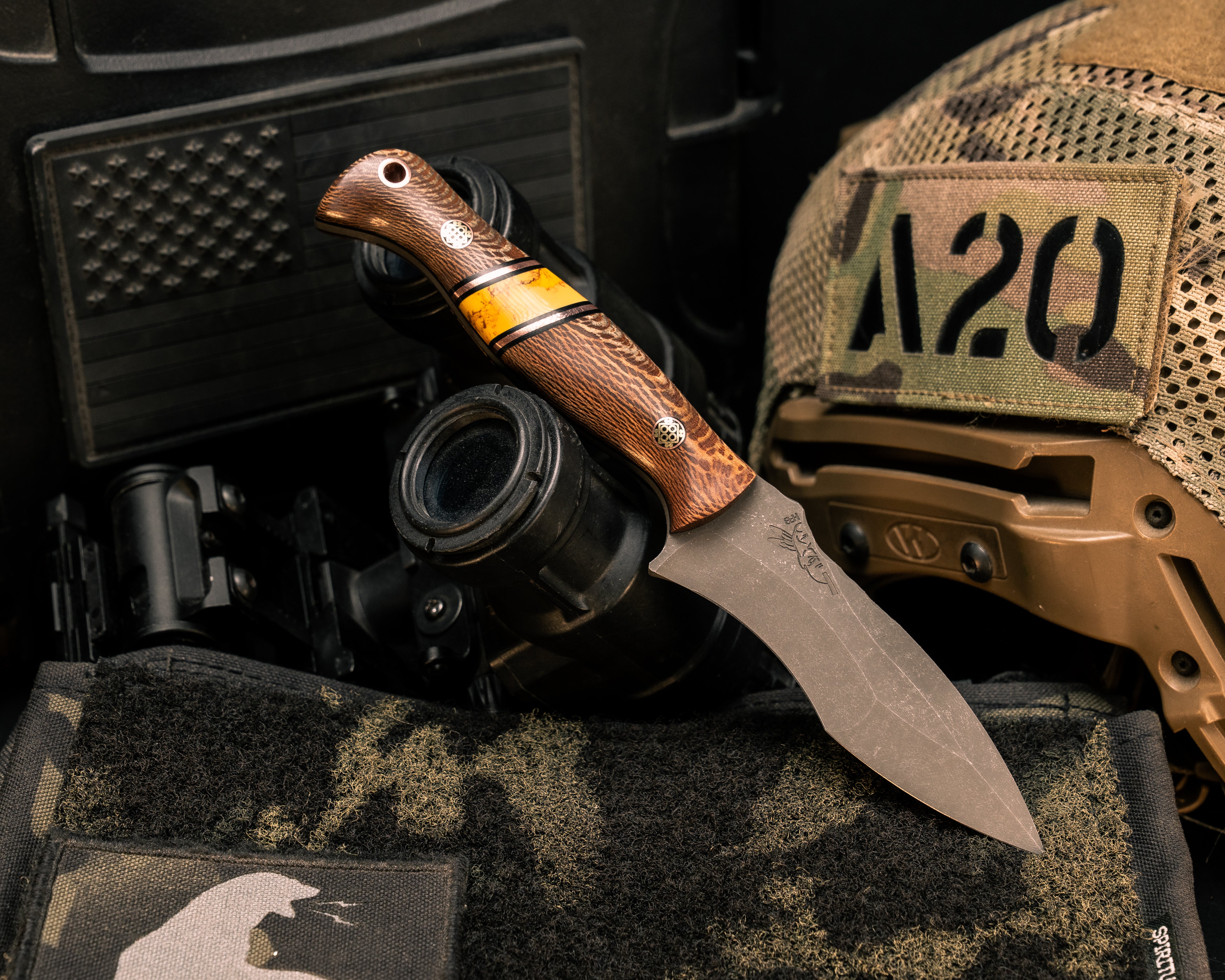 Next: Extremis MK1- Pheasantwood, Black G10, Copper and Yellow Dino Bone Tru-stone Split, Mosaic Pins, Copper Lanyard Pin, Smooth Grip