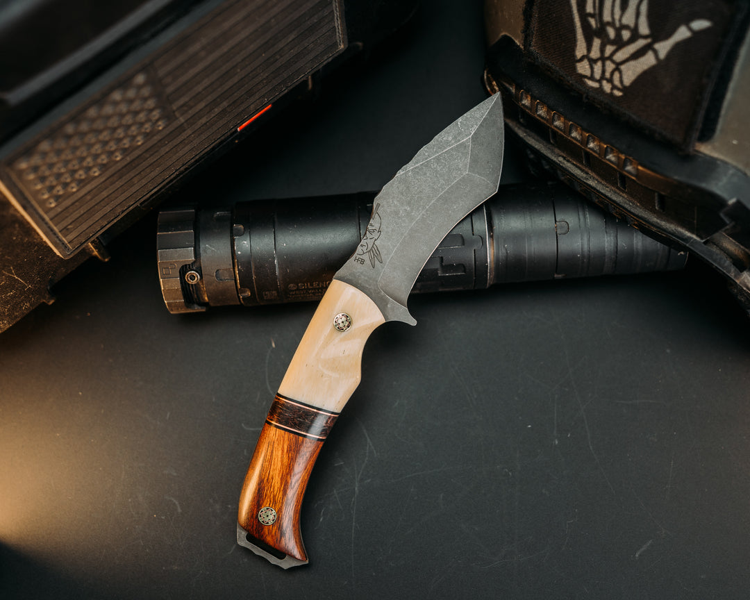Buteo - Giraffe Bone, Black G10 and Copper Pin Striping, Copper Dark Matter Carbon, Desert Ironwood, Mosaic Pins, Contoured Grip