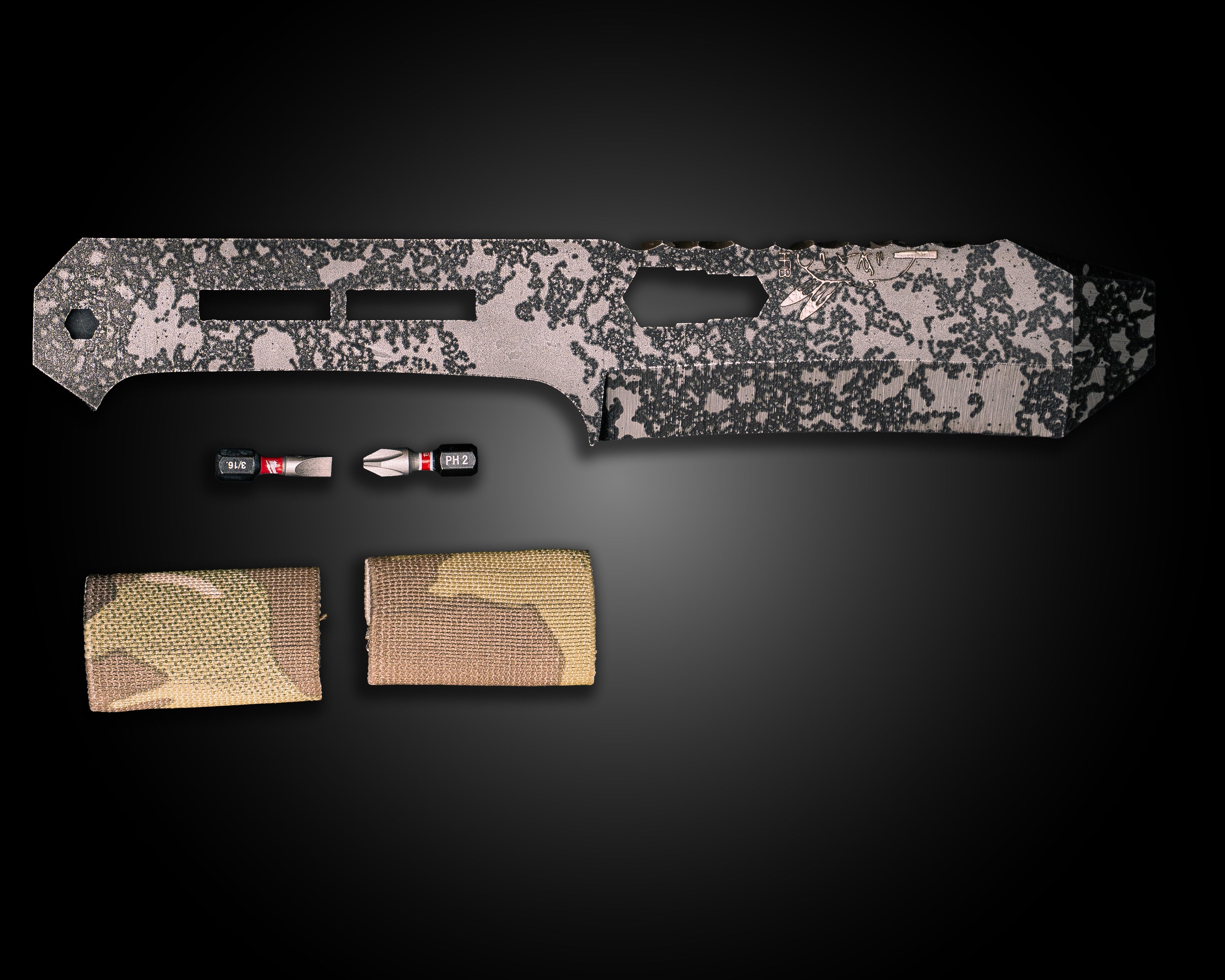 Breacher Bar Multi-tool Prybar- Black Multicam Elastic Bands, Phillips Bit Included, Acid Etch and Rock Wash Finish