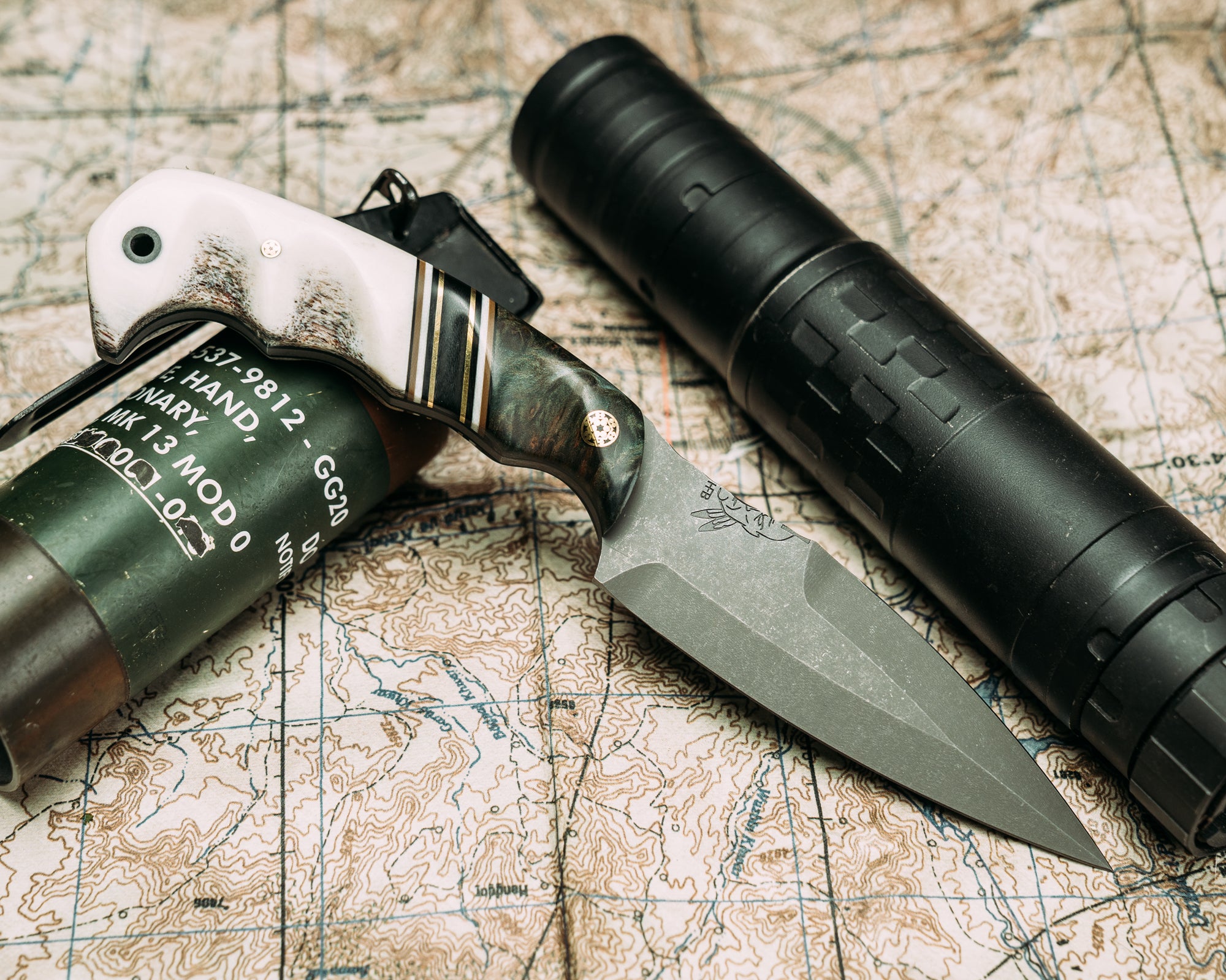 Next: 4" HUMINT- Dyed Redwood, Black G10, Coyote G10, White G10, Black G10 and Brass Split, Mosaic Pin, 1/8" Mosaic Pin, CF Lanyard Pin, Grooved Grip