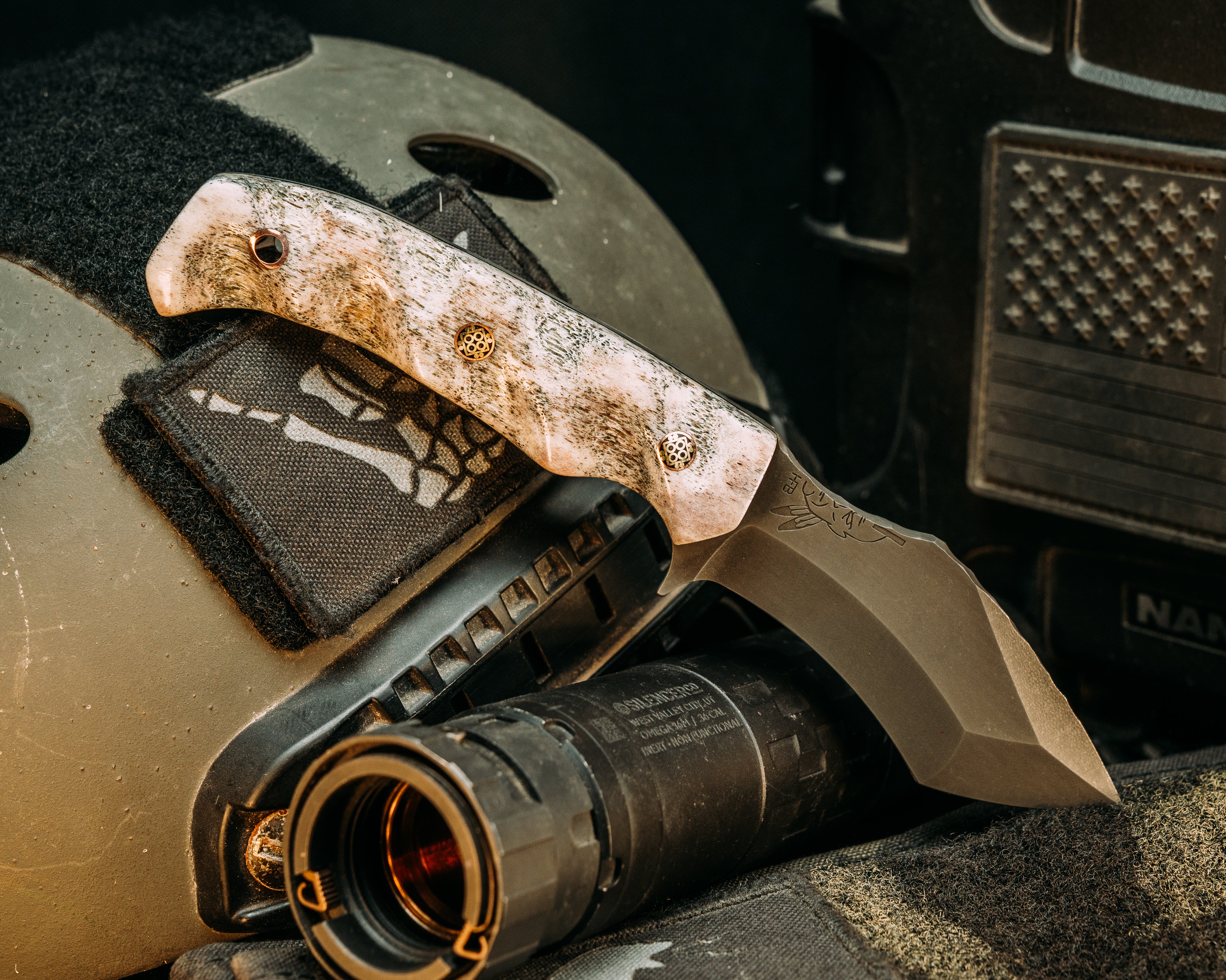Buteo- Redwood Burl, Black G10 and Aluminum Pin Striping, Chrysocolla Tru-stone Split, Mosaic Pins, Textured Grip