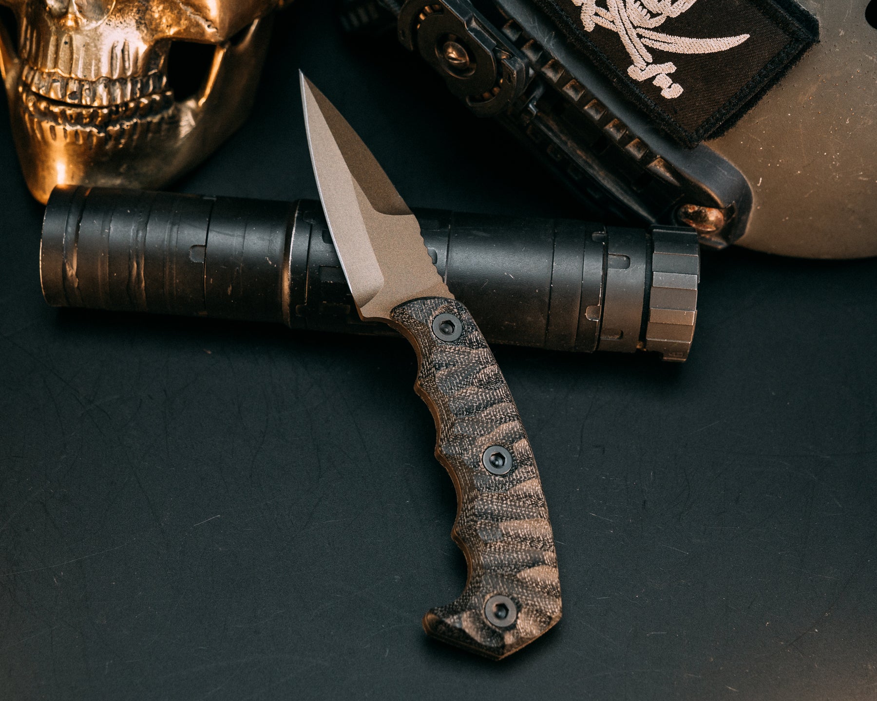 3" HUMINT - Black Canvas Micarta, Midnight Bronze Cerakote, Allen Bolts, Chaos Grip