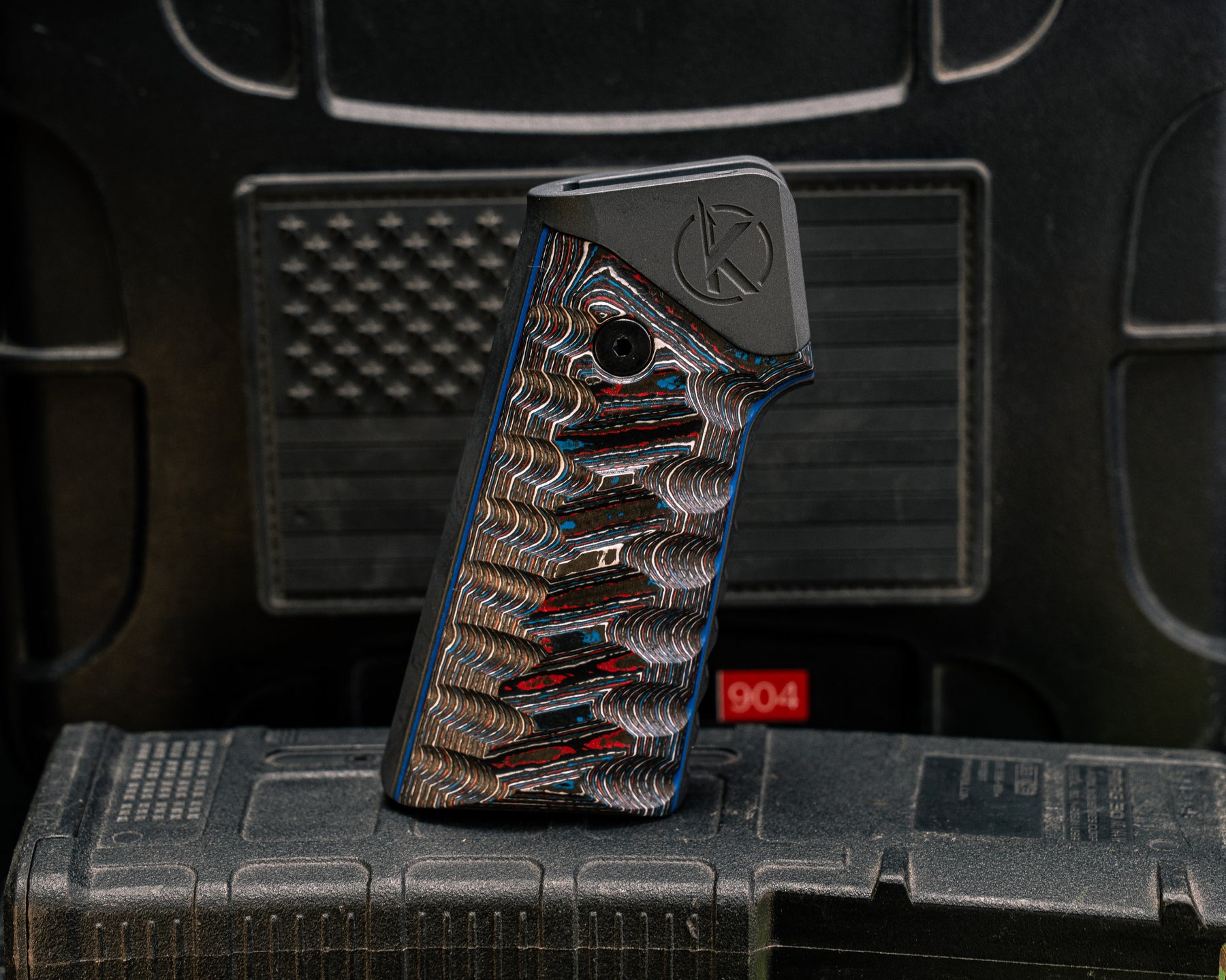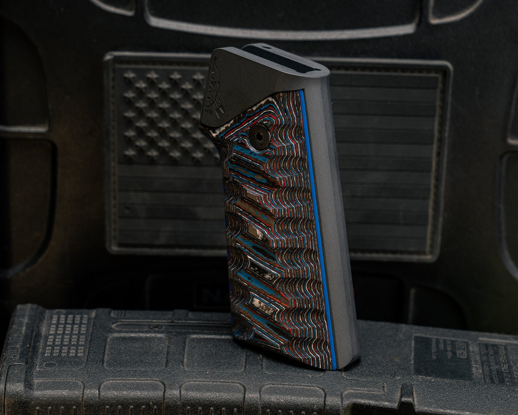 • Grip Base: This drop consists of a 1911 Grip Angle base that allows for firm control and a more relaxed grip position. Precision-machined from aerospace-grade aluminum, the base offers unmatched strength and durability without unnecessary weight. Designed to withstand the harshest environments—from saltwater spray to rugged backcountry terrain—this foundation ensures a secure and dependable grip for any application. Our Grips can be either Type 2 or 3 anodized or Cerakoted in various colors and patterns.