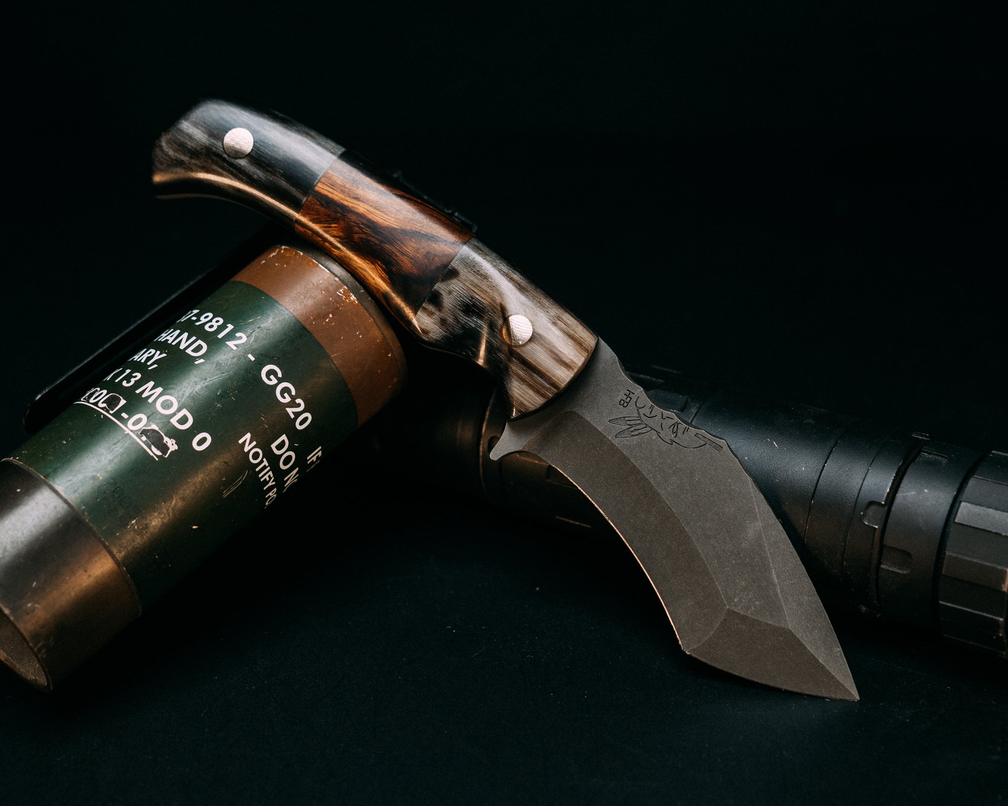 Next: Buteo- Rams Horn, Desert Ironwood Split, Brass Pins, Contoured Grip