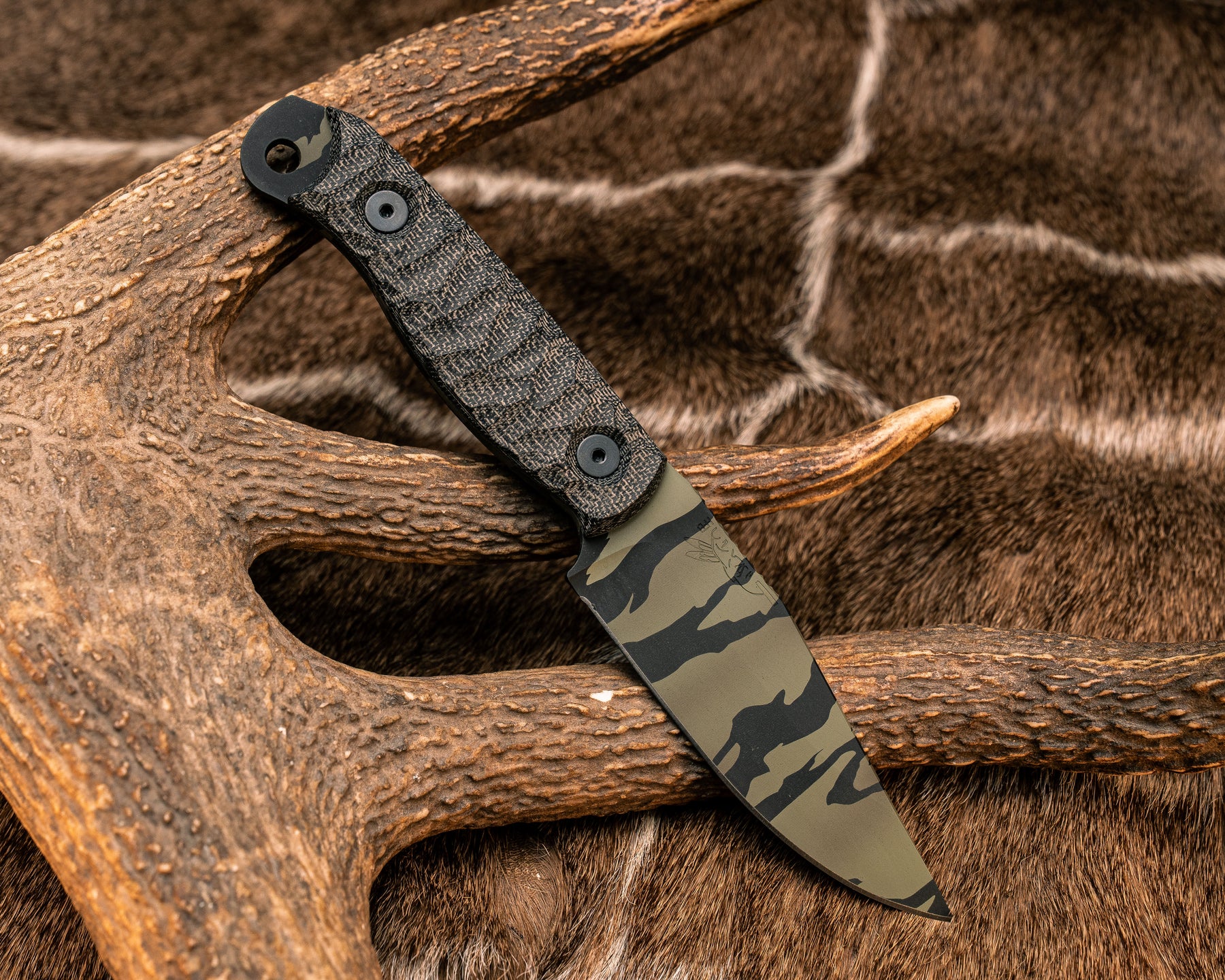 Crow Scalper- Black Canvas Micarta, Tiger Stripe Cerakote, Allen Bolts