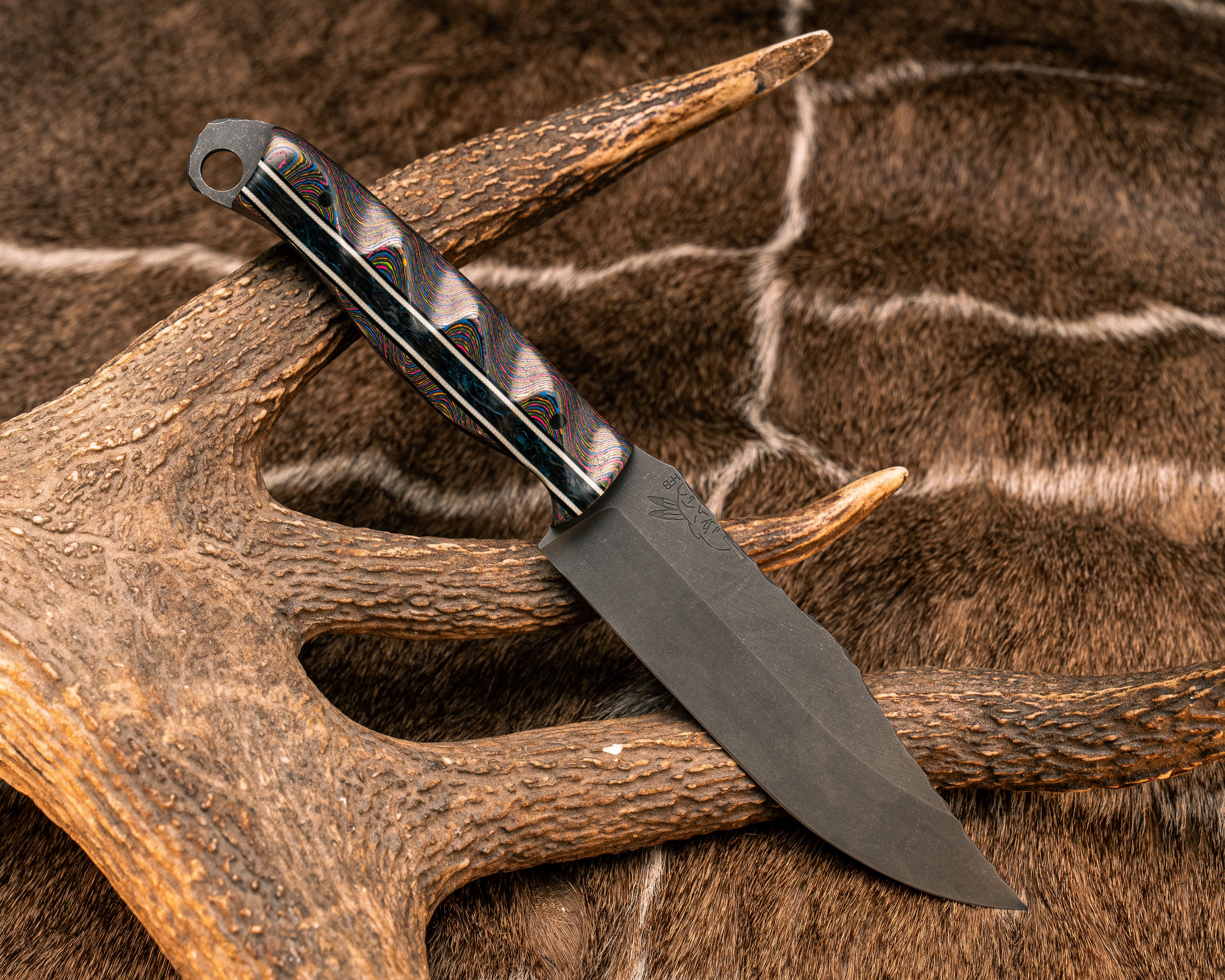 Next: Crow Scout- 80's Rad Carbon, Black G10 and White G10 Pin Striping, Blue Dark Matter Carbon Split, 1/8" CF Pins, Textured Grip
