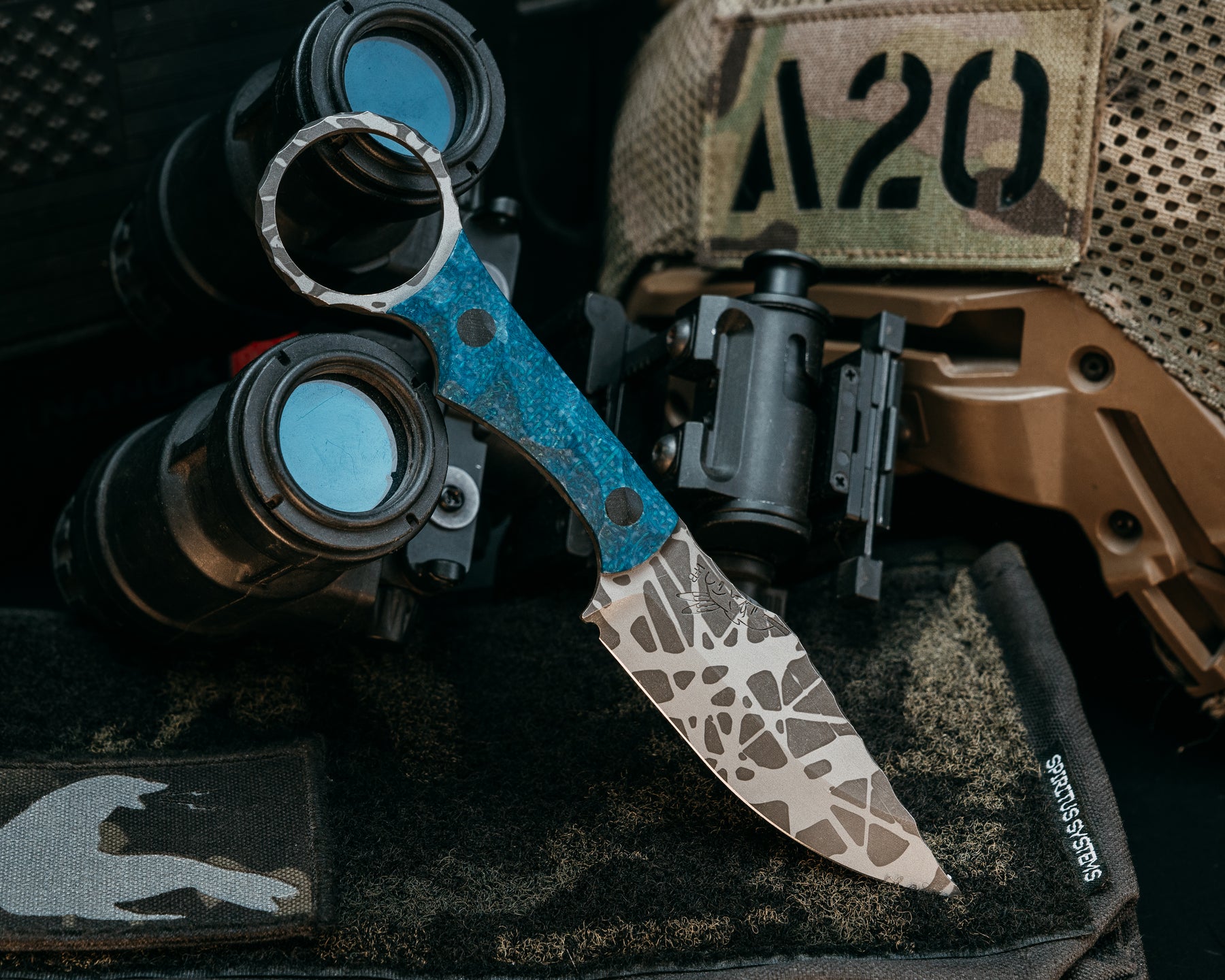 Jaq- Admiral Blue Jute Micarta, CF Pins, Textured Grip