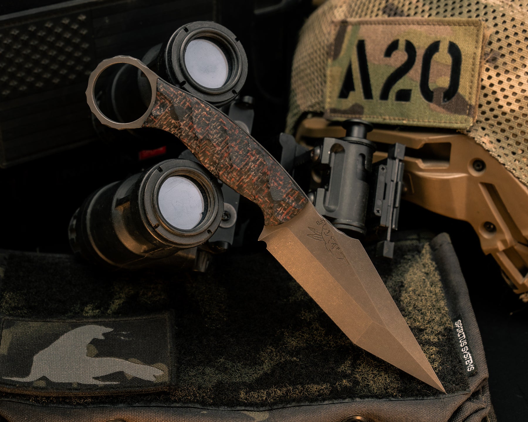 Ringed Tac Tanto- Black/Red Burlap Micarta, CF Pins, Chaos Grip