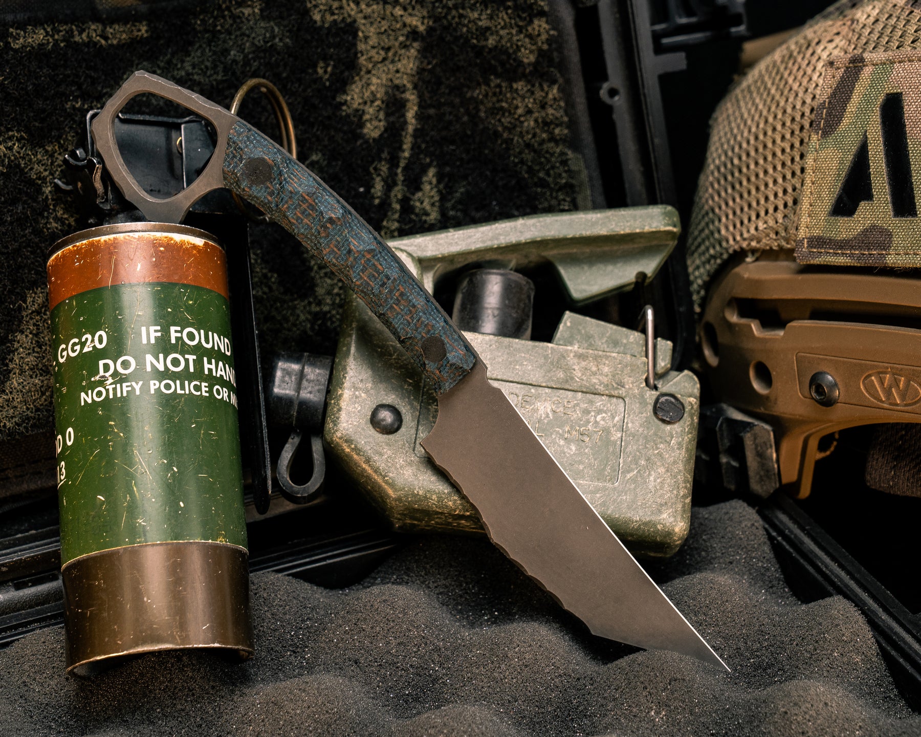 Blade designed by Special Operators for easy carry and easy access in plate carrier or in low vis situations, for pushing or stab and slash movements.
