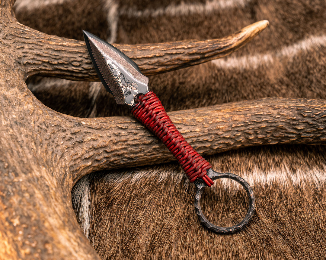 Ringstrike - Baker Forge CopperMai Random Damascus, Red Leather Wrap