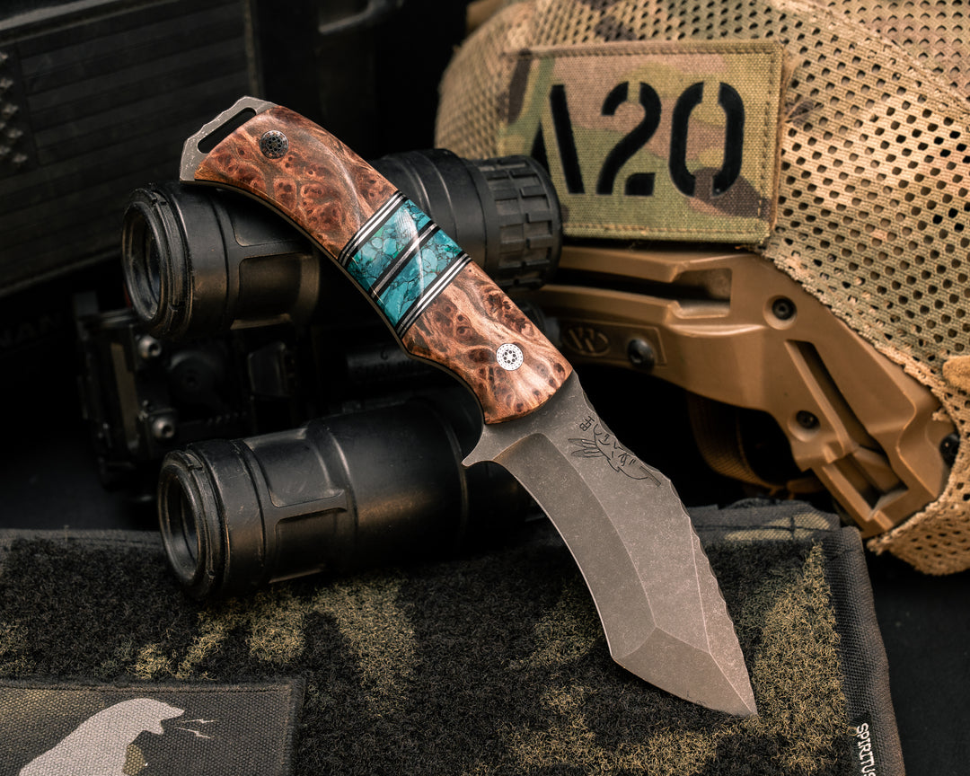 Combat Dirt Nap- Fiddleback Jarrah wood, Mosaic Pins, Textured Grip