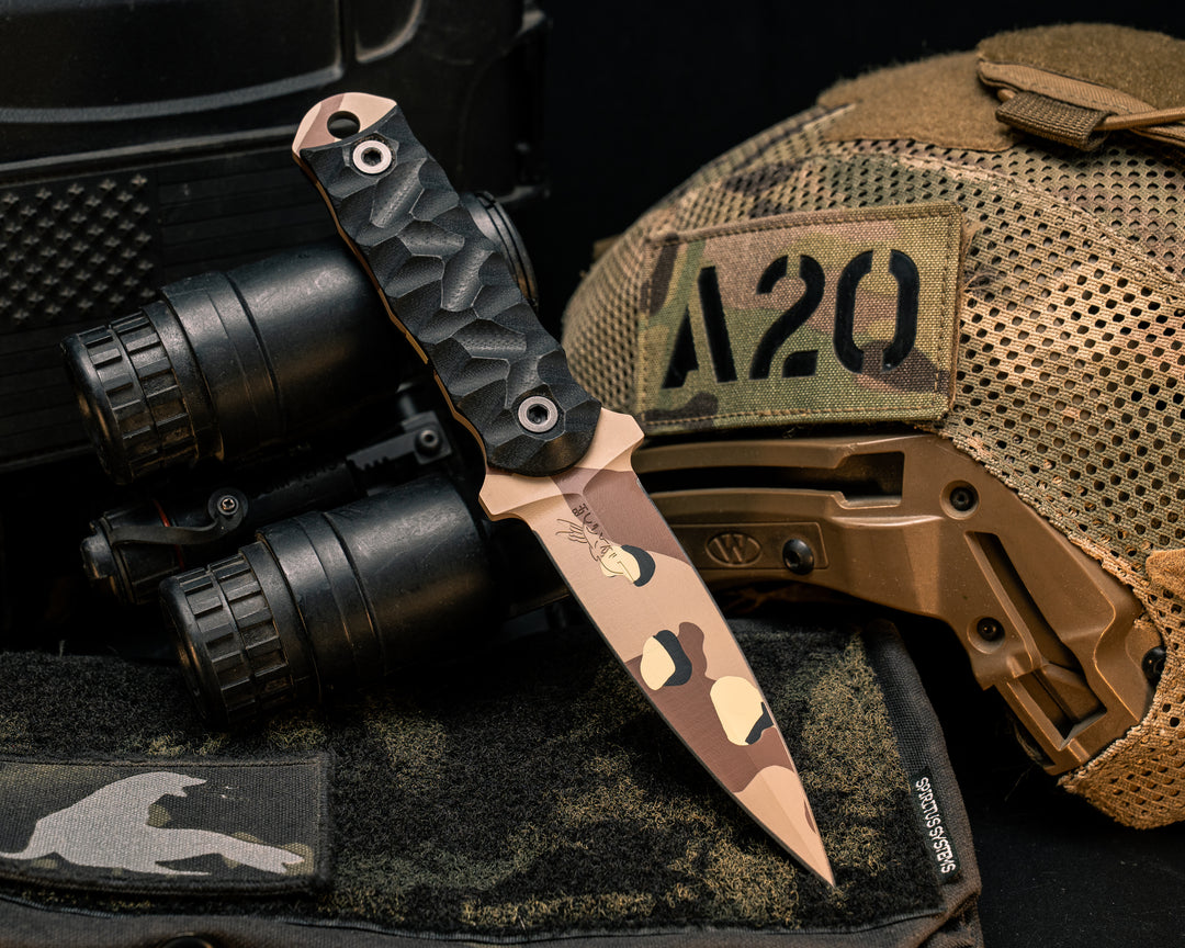 Combat Dagger- Black G10, Chocolate Chip Camo Cerakote, Allen Bolts, Textured Grip