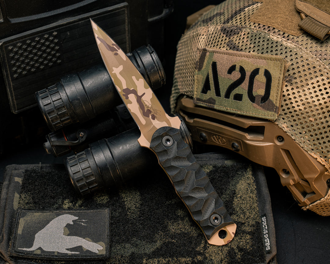 Combat Dagger- Black G10, MultiCam Cerakote, Allen Bolts, Textured Grip