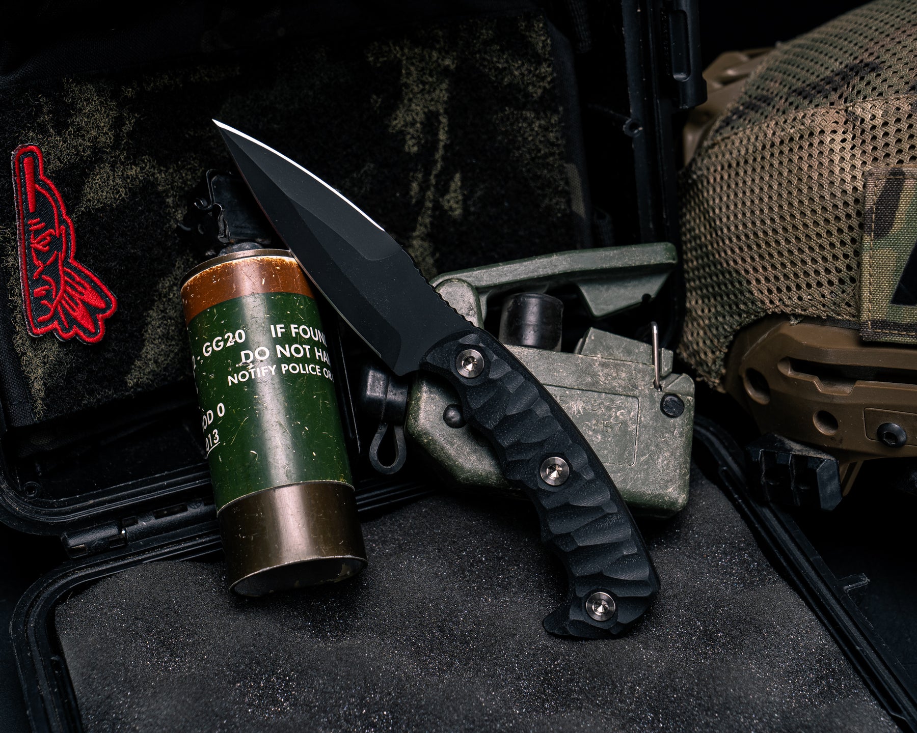 4"  HUMINT- Black G10, Armor Black Cerakote, Ti Allen Bolts, Textured Grip