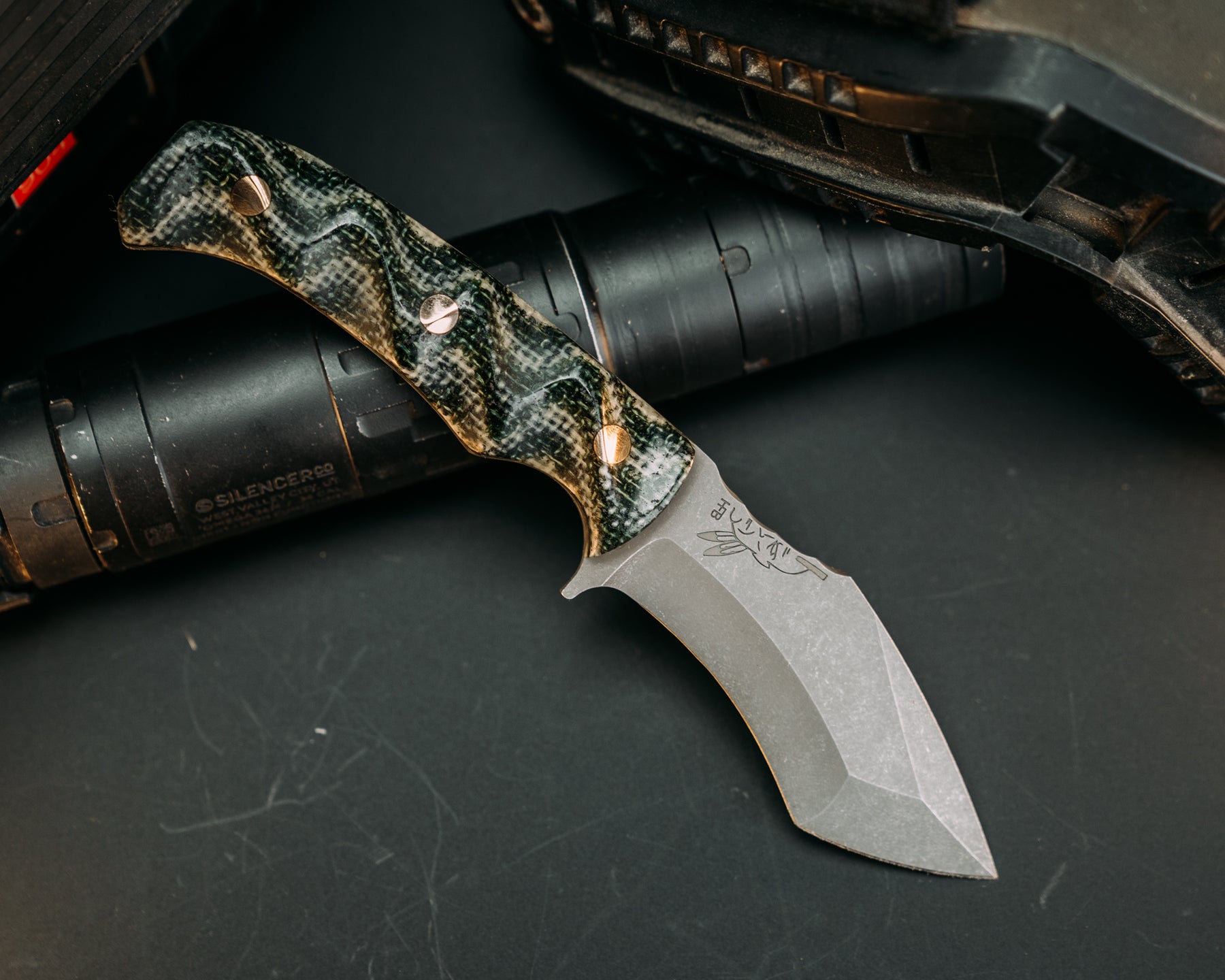 Buteo- OD Green and Desert Tan Layered Burlap Micarta, Brass Pins, Textured Grip