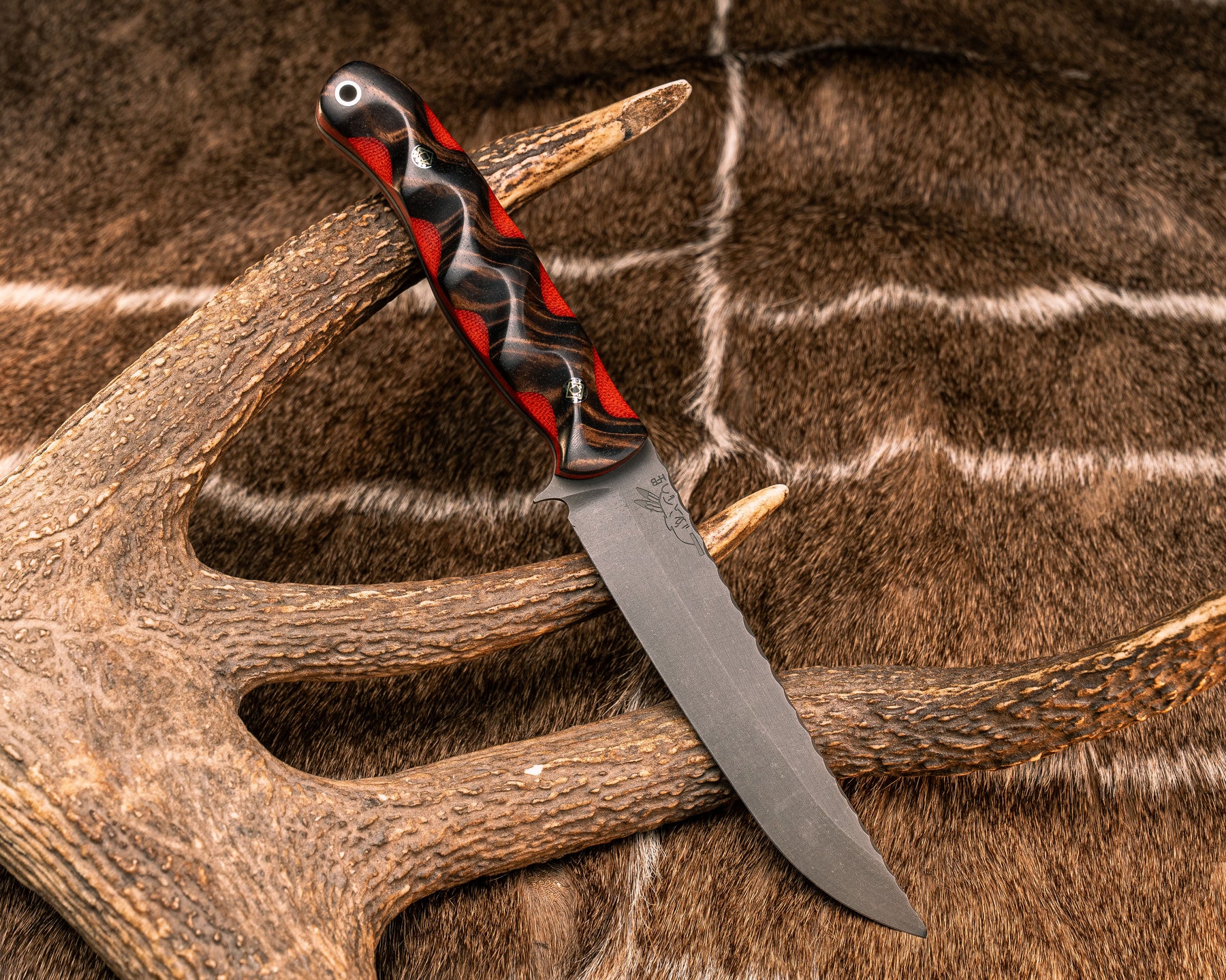 Crow Breakdown- Hawaiian Curly Koa Over Fire Canvas Micarta, Mosaic Pi