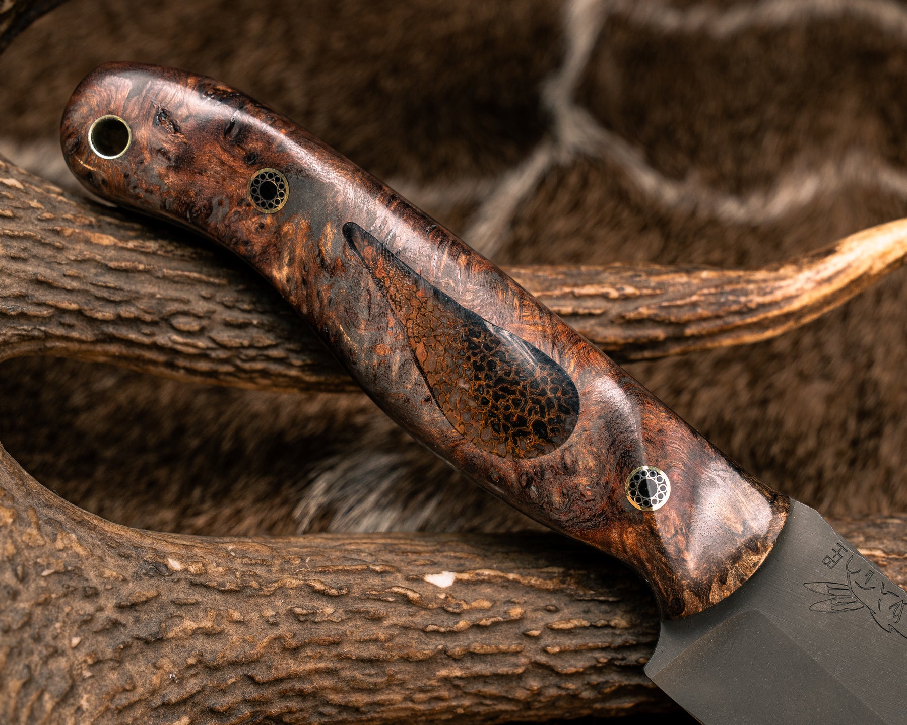 Crow Jr- Chechen Caribbean Rosewood, Dinosaur Bone Cabochon Inlay, Mos