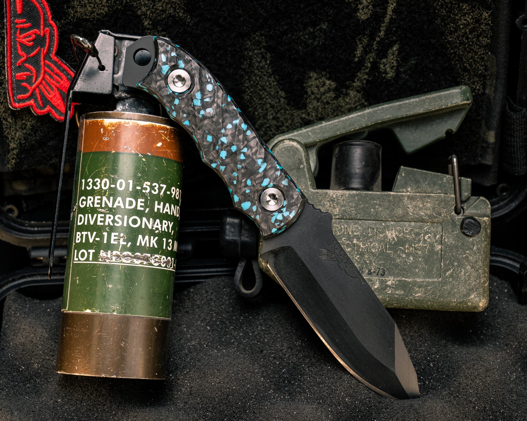Disaster Cub- Turquoise Rocky Wave Carbon, Armor Black Cerakote, Ti Allen Bolts, Textured Grip