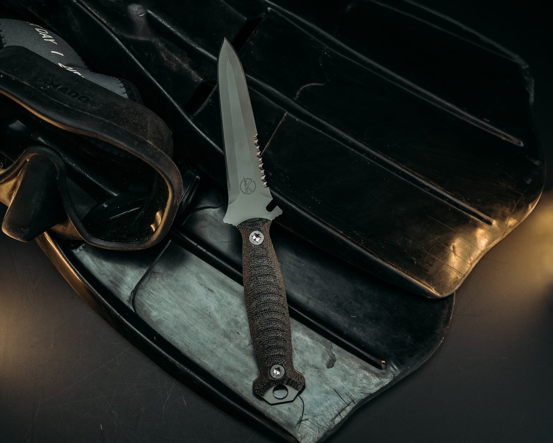 Dive Knife - Black Canvas Micarta, Steel Gray Cerakote, Allen Bolts, I