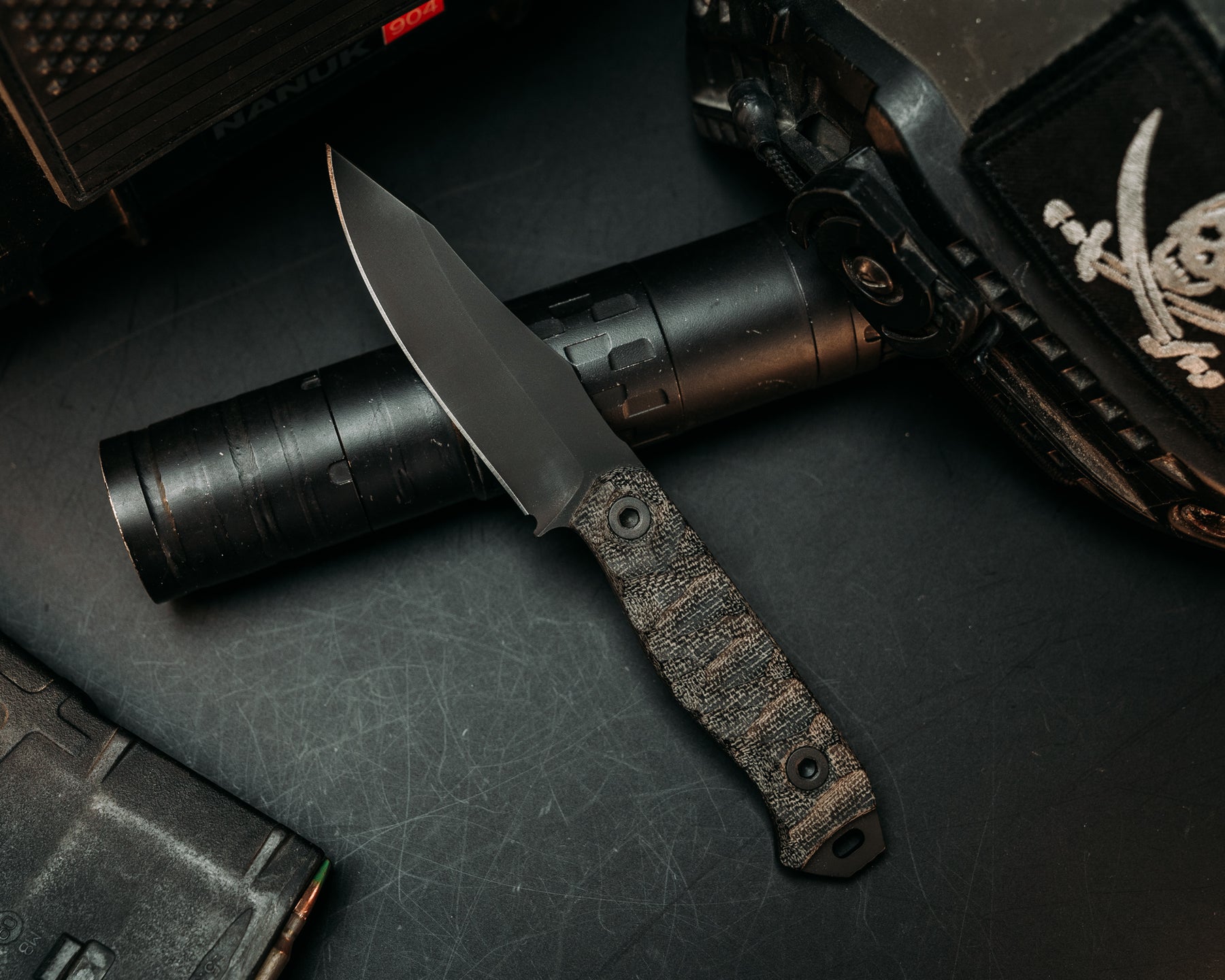 Field Knife Jr - Black Canvas Micarta, Black Armor Cerakote, Allen Bolts, Chaos Grip