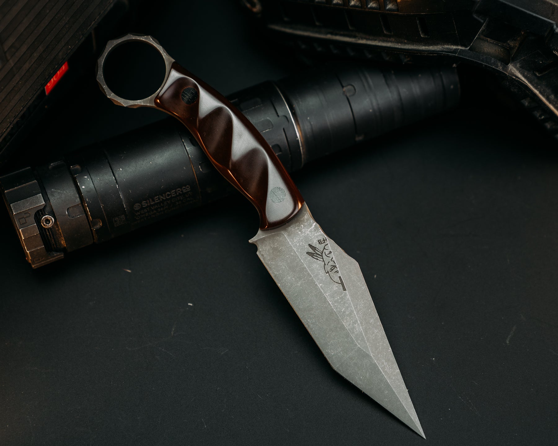 Ringed Tac Tanto- Redstone Brown Richlite, Black Micarta Pins, Grooved Grip