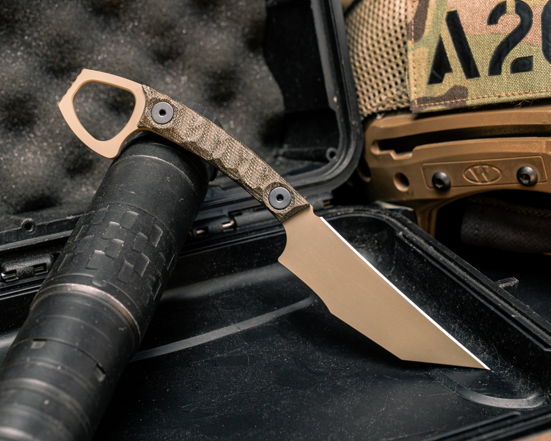 Blade designed by Special Operators for easy carry and easy access in plate carrier or in low vis situations, for pushing or stab and slash movements.