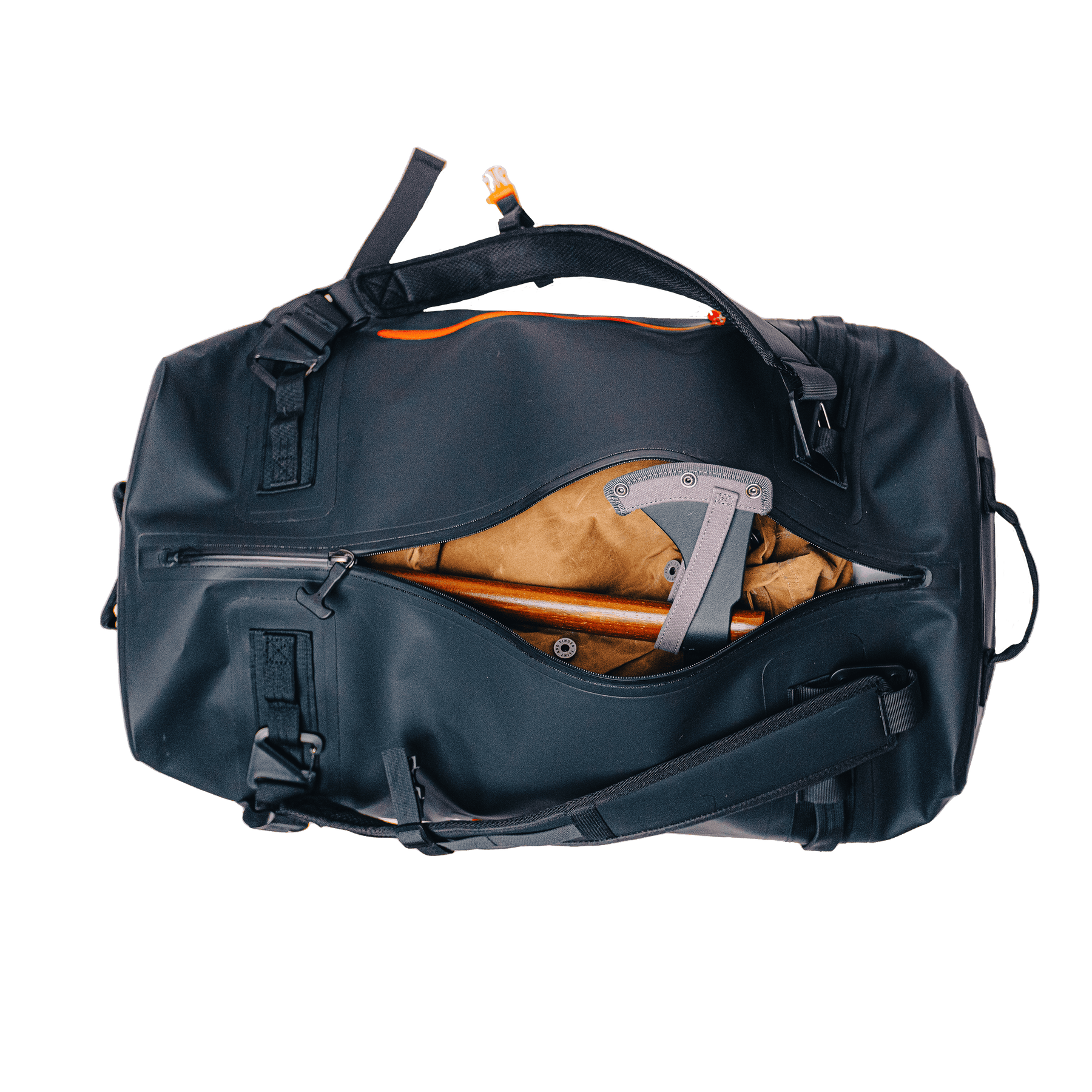 This 65L duffle features 100% waterproof construction and zippers. Its 2