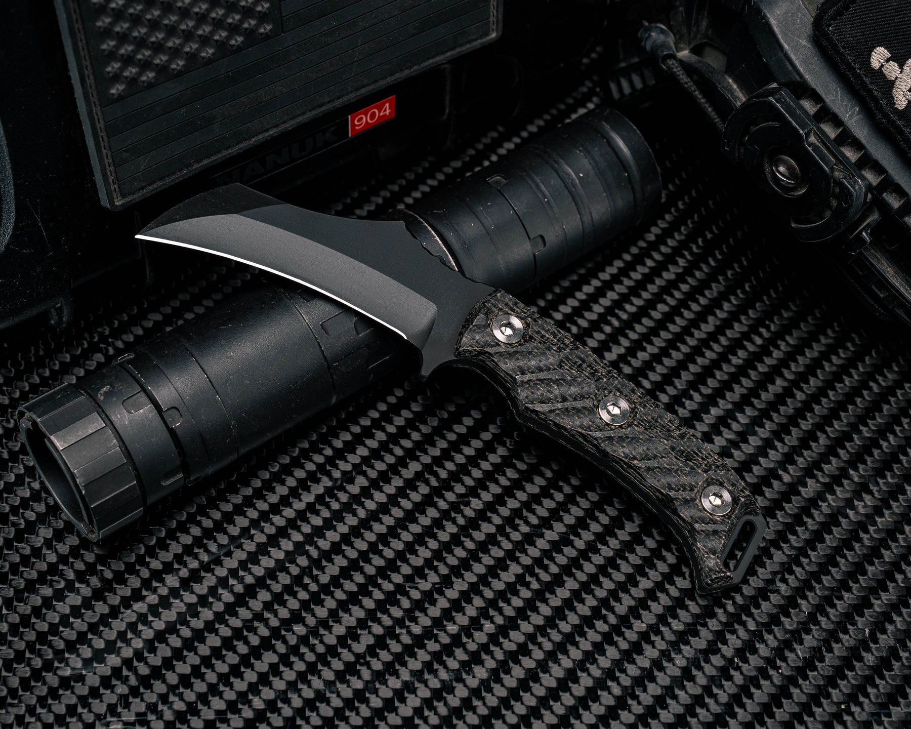 Vulture - Black Burlap Micarta, Armor Black Cerakote, Ti Allen Bolts, Textured Grip, Open Tang